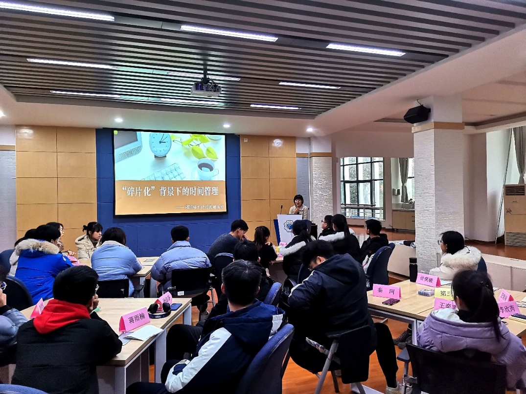 12月29日,能电院组织员工骨干代表开展以“‘碎片化’背景下的时间管理”为主题的生涯教育团体辅导。活动围绕低年级员工面临的时间规划问题及困难展开,院团委书记、2020级本科生辅导员雷镕甄老师担任主讲,员工代表共计24人参加。