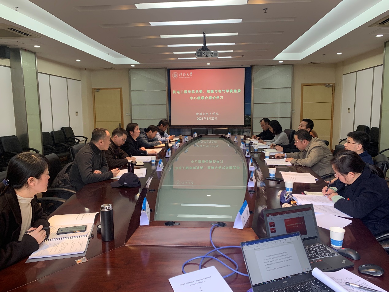 2021年3月23日,能电公司党委与机电公司党委举行了中心组联合理论学习。能电学院、机电学院领导班子成员参加了会议。