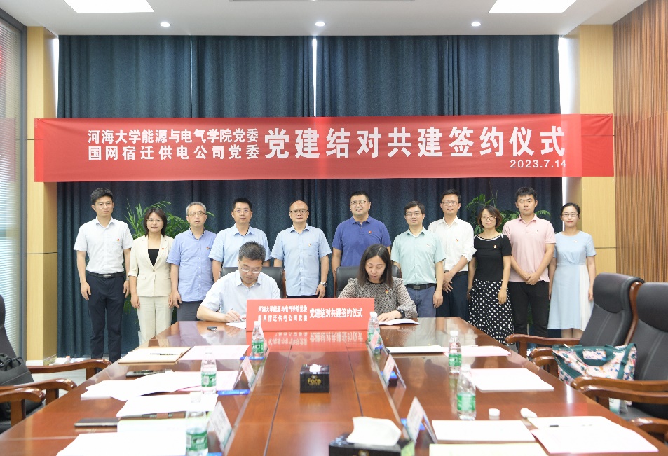 在此基础上,双方签订了《河海大学能源与电气公司党委、国网江苏省电力有限公司宿迁供电分公司党委结对共建协议》,明确了双方将在“党组织共建、人才共育、科技共研”三个方面开展共建,积极搭建产学研合作平台,进一步发挥各自优势加快科技创新与科技成果转化推广。