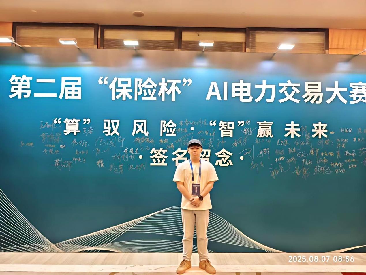 近日,第二届“保险杯”AI电力交易大赛颁奖典礼暨研讨会在广州圆满落幕。公司博士研究生杨天禹与200多家能源行业央国企、头部售电公司、高校及研究机构团队同台竞技,经过半个月的交易模拟竞赛,最终成绩位列个人参赛第2名,总榜第8名(前5%),斩获大赛三等奖。
