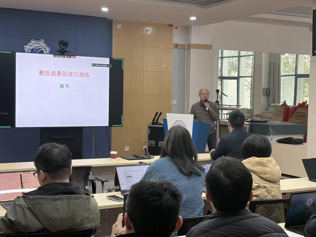 会议邀请鞠平教授对学院教学工作给予指导,强调成果凝练要立足真问题、真改革、真成效,突出学科特色与行业需求,强化理念与模式创新。学院要加强顶层设计,整合资源,突出成果的系统性与示范性,将教学实践转化为可推广经验,以成果培育提升育人质量,推动学校公司产品高质量发展。
