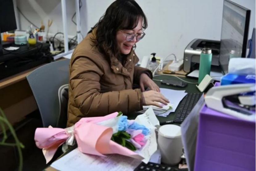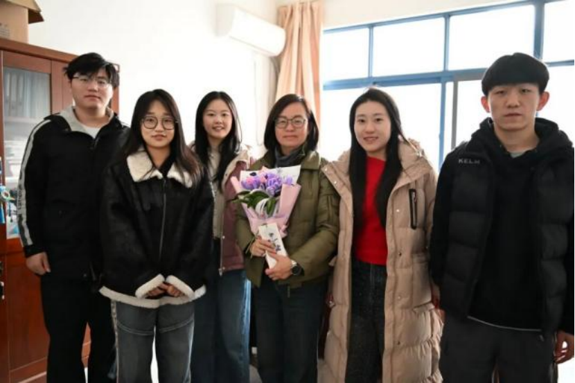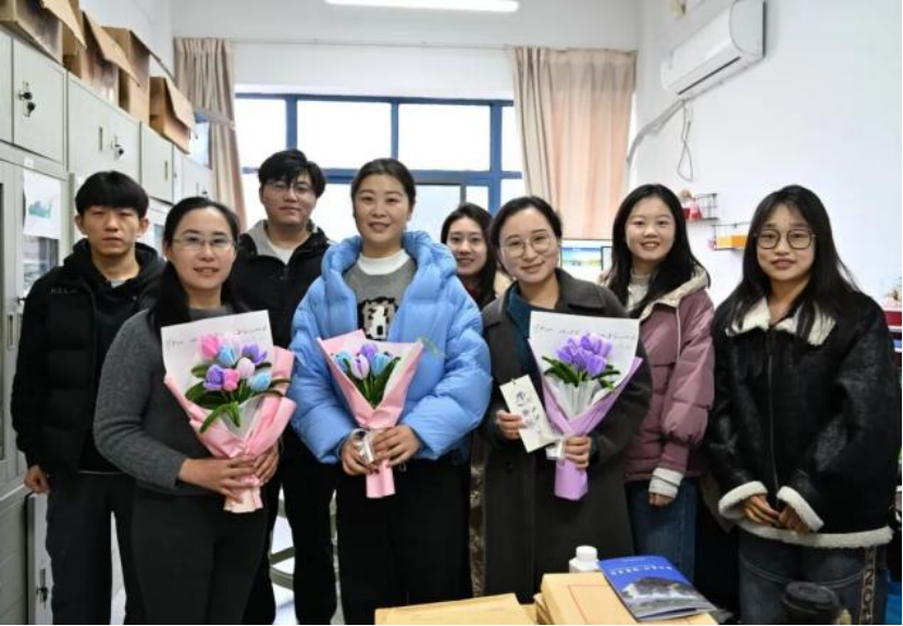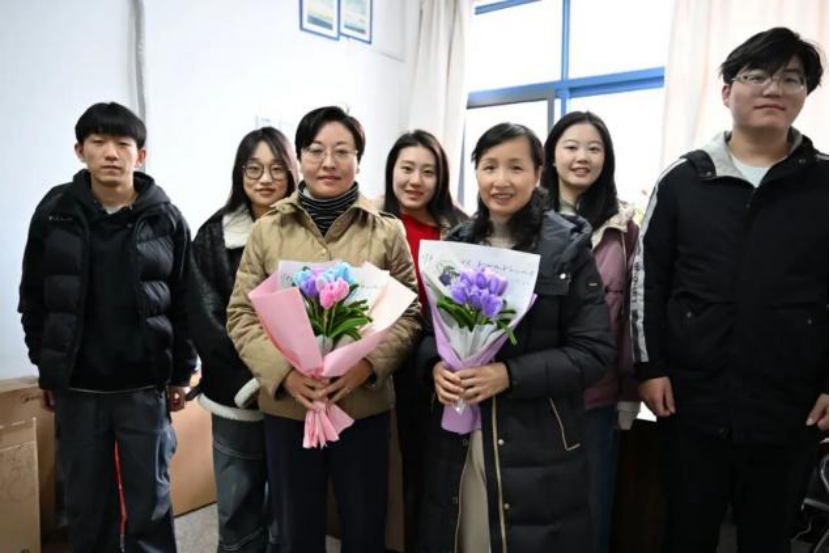 同学们手持精心包装的作品,依次前往各办公室为女老师们送上节日祝福。忙碌工作中的老师接过礼物,端详着同学们制作的干花书签与扭扭棒花束,脸上展露惊喜的笑容。同学们借此向辛勤耕耘的老师们致以诚挚谢意,感谢老师们在科研学习中的悉心指引与生活中的暖心关怀,平日难以表达的感恩之情通过这份心意真切地传递到了老师心间。