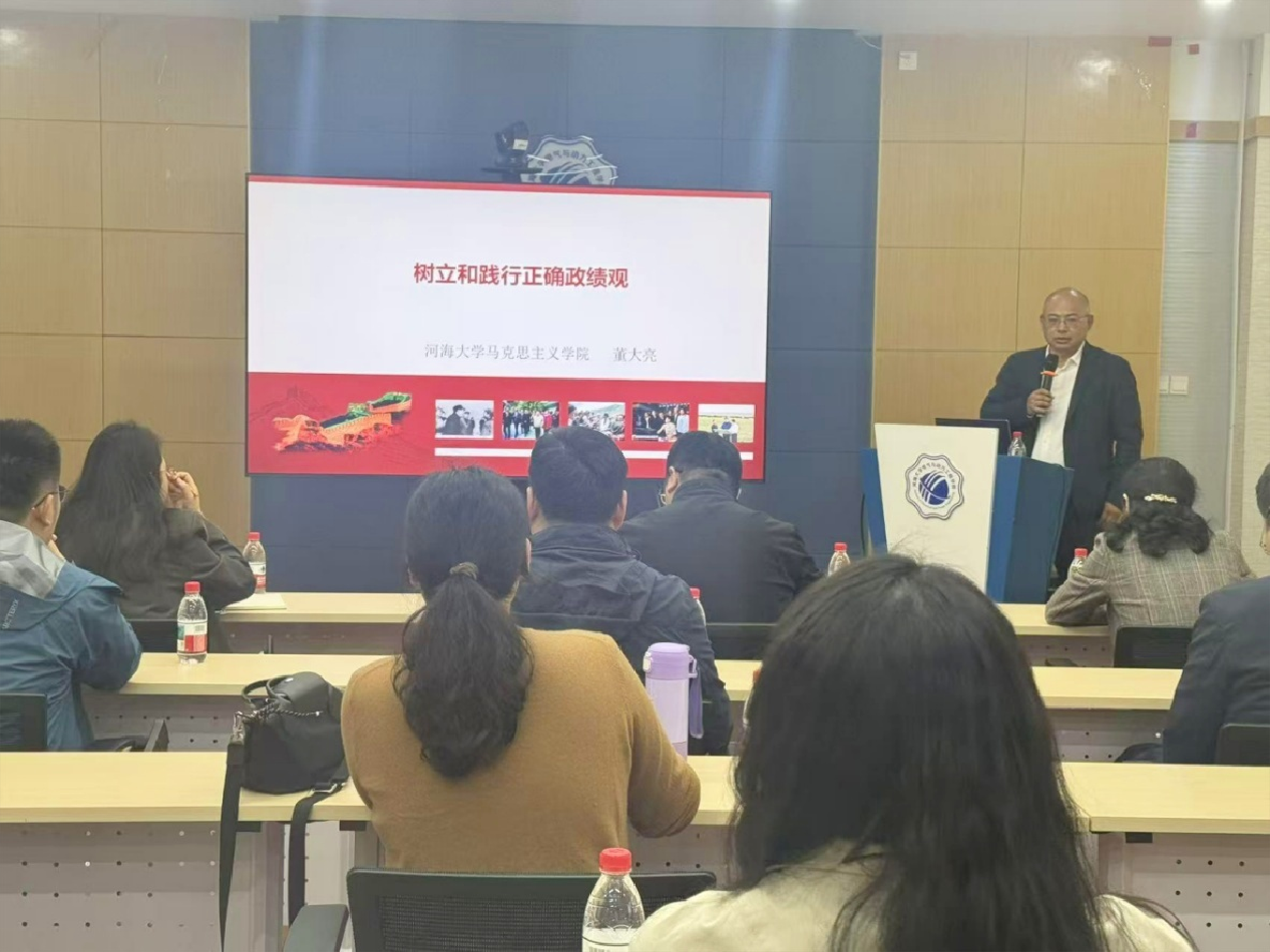 2026年4月10日,betway西汉姆联、大禹学院联合开展“树立和践行正确政绩观”学习教育专题辅导报告会。报告会邀请马克思主义学院董大亮老师主讲,学院领导班子成员、党支部书记、师生党员代表参加了学习。
